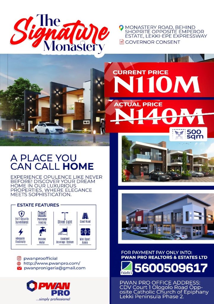 LOCATION: Monastery Road, behind Shoprite, opposite Emperor Estate, Lekki–Epe Expressway