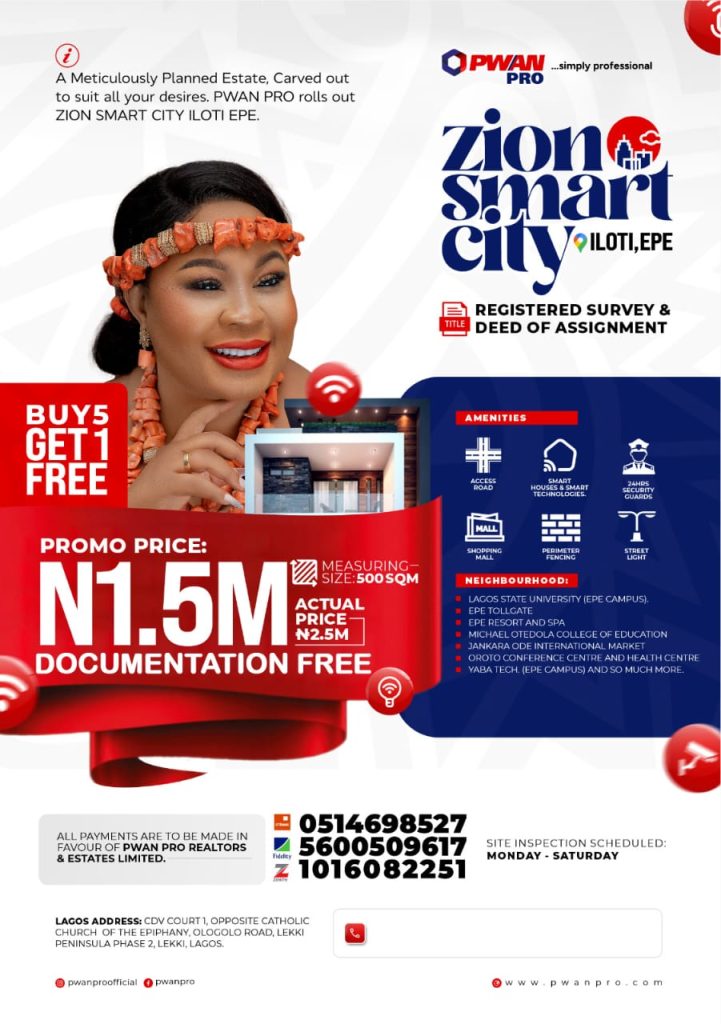 A Meticulously Planned Estate, Carved out to suit all your desires. PWAN PRO rolls out ZION SMART CITY ILOTI EPE.
